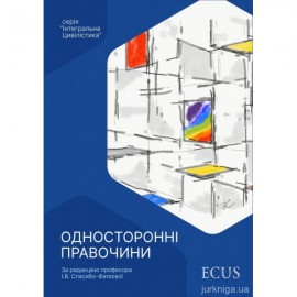 У монографії аналізуються поняття односторонніх правочинів, їх правова характеристика та зв’язок з договорами, види з поділом на односторонні правочини в речовому, спадковому, зобов’язальному, корпоративному, сімейному праві, праві інтелектуальної власності. Автори спільними зусиллями надали можливість скласти уявлення про численні нюанси односто..