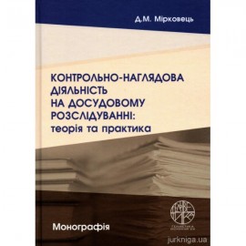 У монографії з урахуванням сучасного стану законодавства і правозастосовної практики, наукових джерел комплексно досліджено проблеми здійснення контрольно-наглядової діяльності на досудовому розслідуванні.