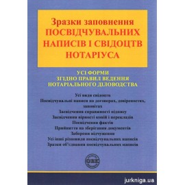 У даному виданні представлено зібрання зразків заповнення усіх різновидів форм посвідчувальних написів і свідоцтв нотаріуса згідно з Правилами ведення нотаріального діловодства, а також наведено зразки об’єднання деяких з них. Наведені зразки можуть використовуватися у нотаріальній діяльності. Видання розраховане на державних і приватних нотаріу..